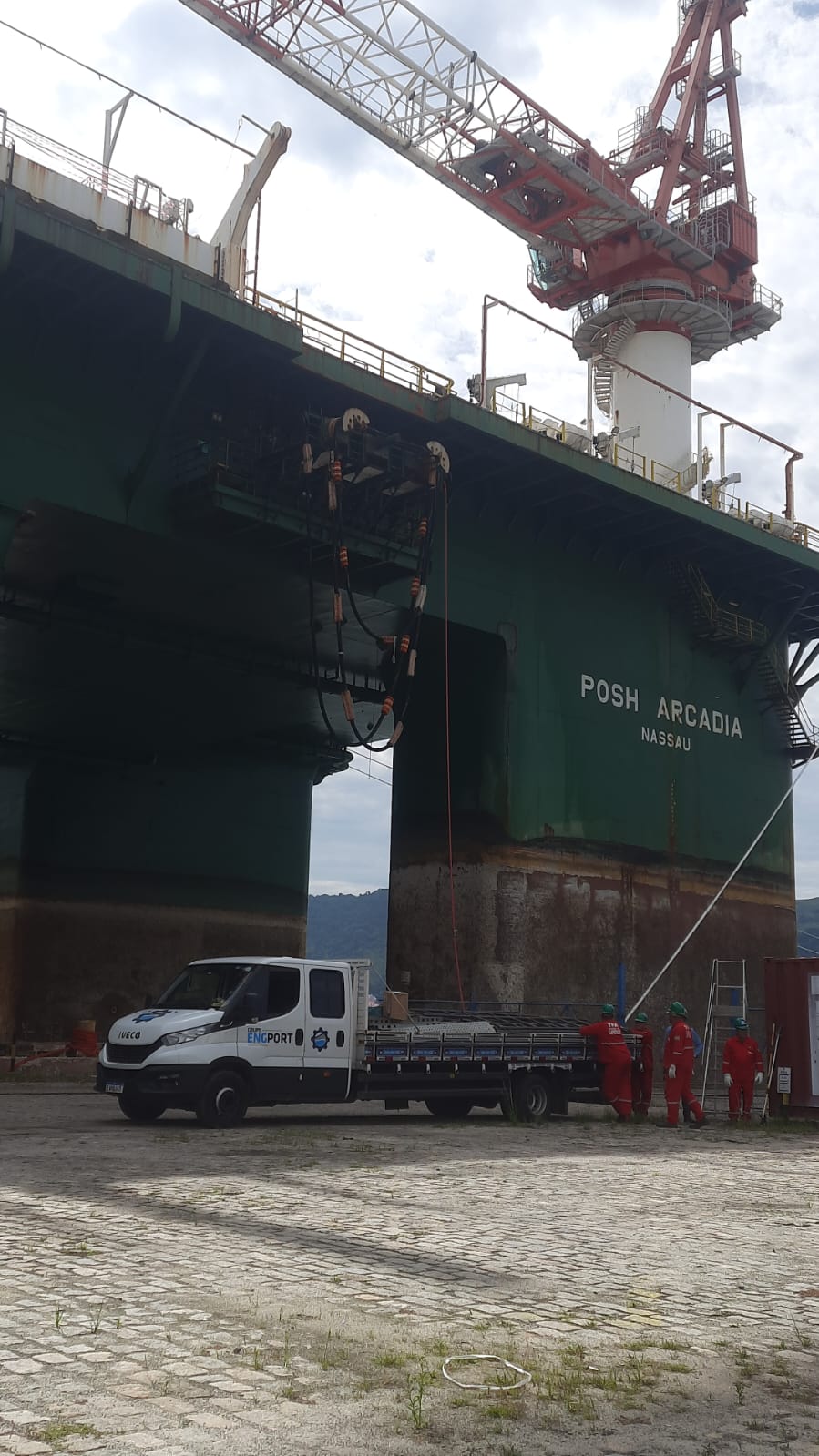 O Grupo Engport foi contratado pela POSH para executar o shutdown completo da plataforma Arcadia durante sua parada de manutenção no Terminal Portuário de Angra dos Reis. Este projeto representou uma das operações mais complexas e abrangentes de 2024, mobilizando uma equipe multidisciplinar de mais de 40 profissionais altamente qualificados que trabalharam ininterruptamente em turnos de 12 horas durante 50 dias.