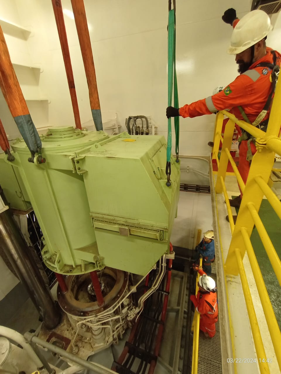 O principal desafio técnico centrava-se no içamento dos thrusters (propulsores) da plataforma – equipamentos críticos de múltiplas toneladas responsáveis pelo sistema de posicionamento dinâmico. O içamento, desses componentes exigiam procedimentos rigorosos de movimentação de cargas, com margem zero para erro.